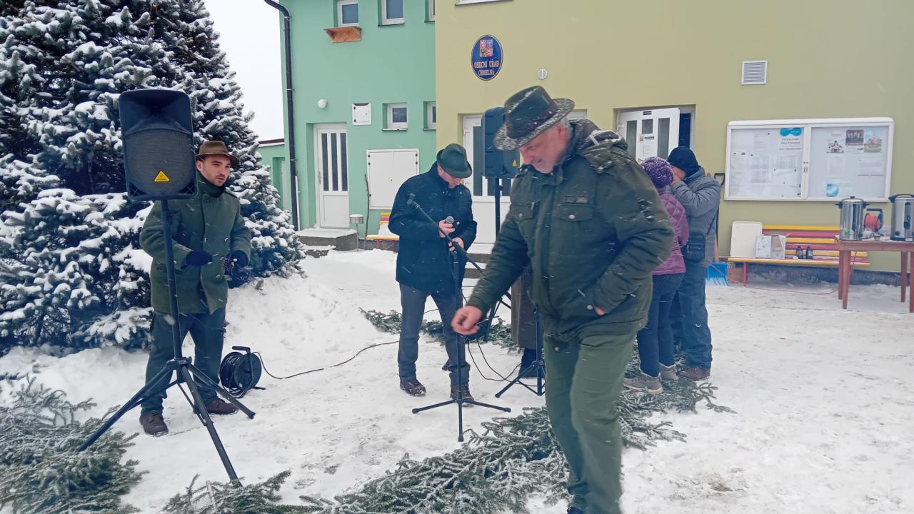Již v odpoledních hodinách předcházelo plesu na chmelenské návsi slavnostní vystoupení mysliveckých trubačů, které navodilo sváteční atmosféru celého dne. Slyšet bylo několik mysliveckých fanfár a jiných skladeb. Myslivci měli pro návštěvníky a posluchače připravené pohoštění v podobě zvěřinových klobás „ze svého revíru“, čaje a svařeného vína.