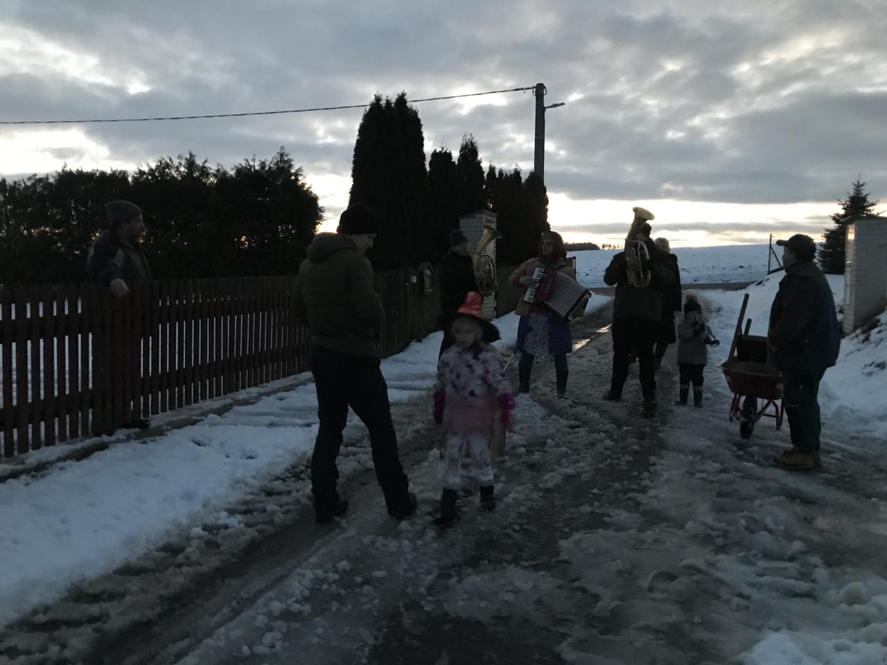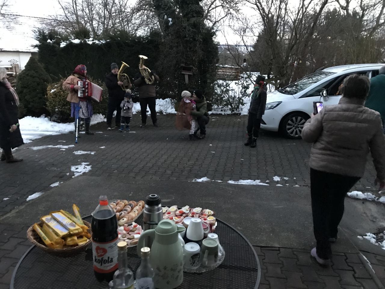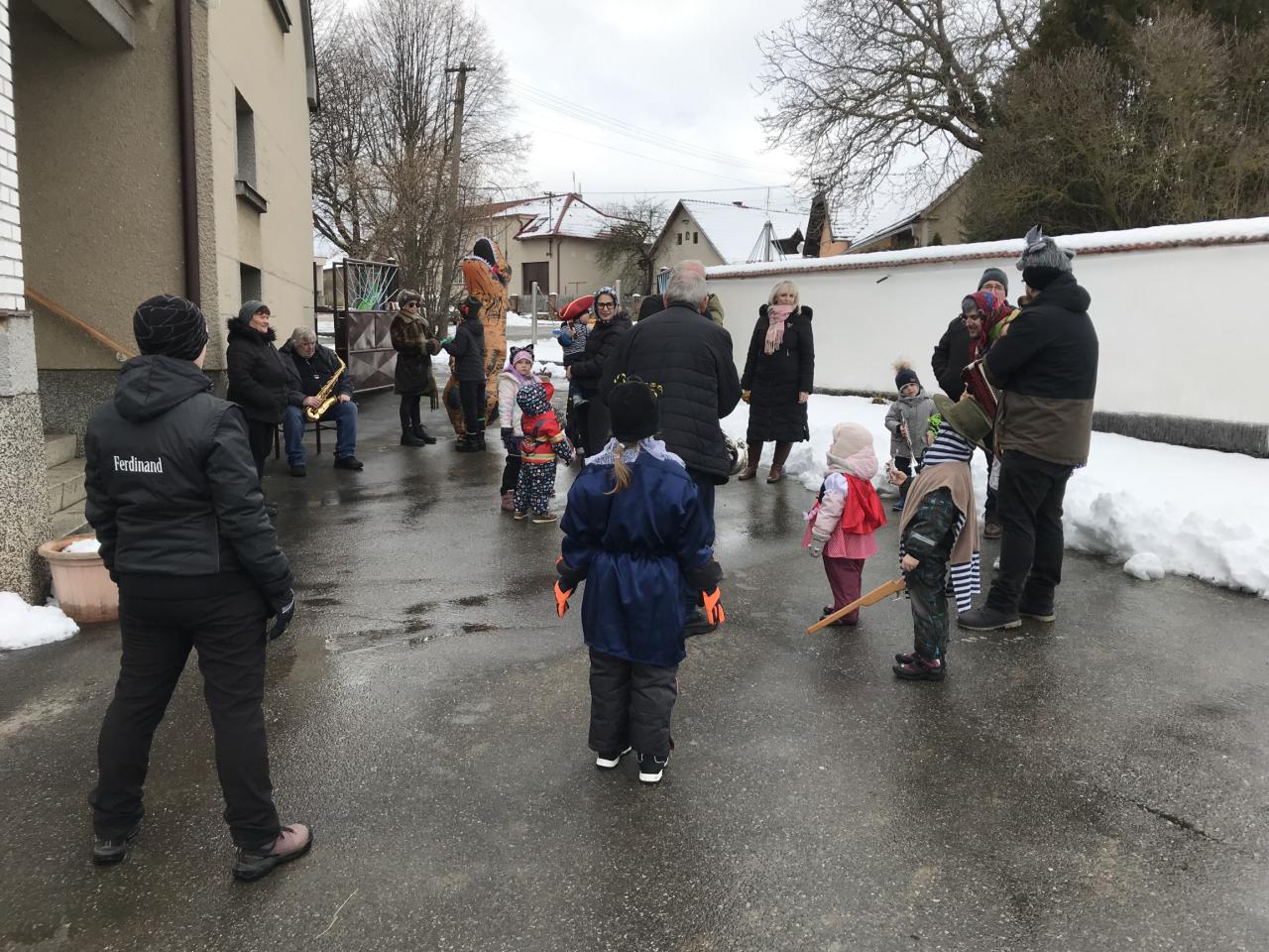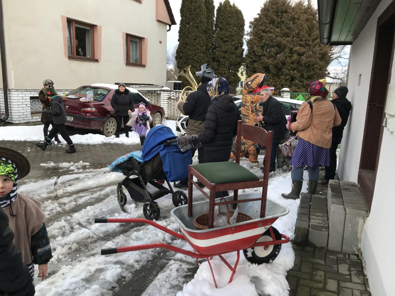 Jelikož se akce konala ve všední den, někteří se do průvodu přidali později a jiní se zase během obchůzky odpojili. Vzhledem k tomu, že u každého domu se s obyvateli chvíli hovořilo a přitom se s chutí ochutnávaly nabízené dobroty, podařilo se průvod dokončit po celé vesnici až kolem 19:30. Během obchůzky se také vybralo několik peněz, které byly následně rozděleny mezi děti spolu s velkým množstvím sladkostí.