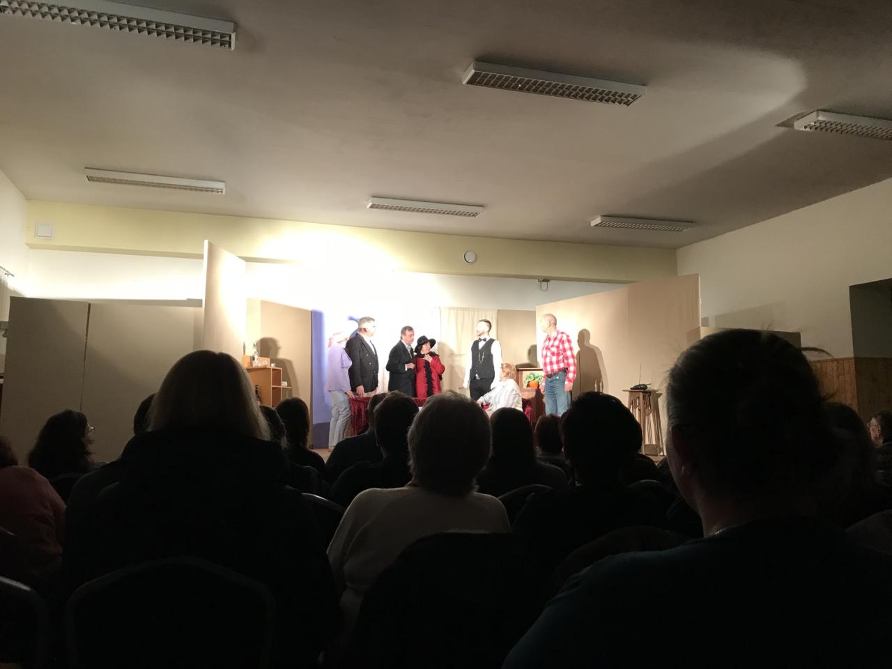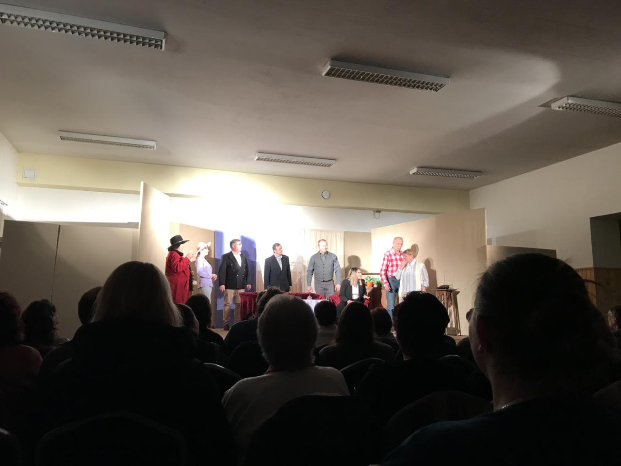 Sobotní večer patřil od 19:30 hodin ochotnickému divadlu. Do Chmelné zavítal Divadelní soubor Ludvíka Němce z Bystřice, soubor s bohatou historií sahající až do roku 1874. Tento ochotnický spolek je známý nejen svou tradicí, ale také účastí na prestižních přehlídkách, včetně Krakonošova divadelního podzimu, a dvakrát byl oceněn Čestným uznáním ministra kultury a do Chmelné zavítal už podruhé.