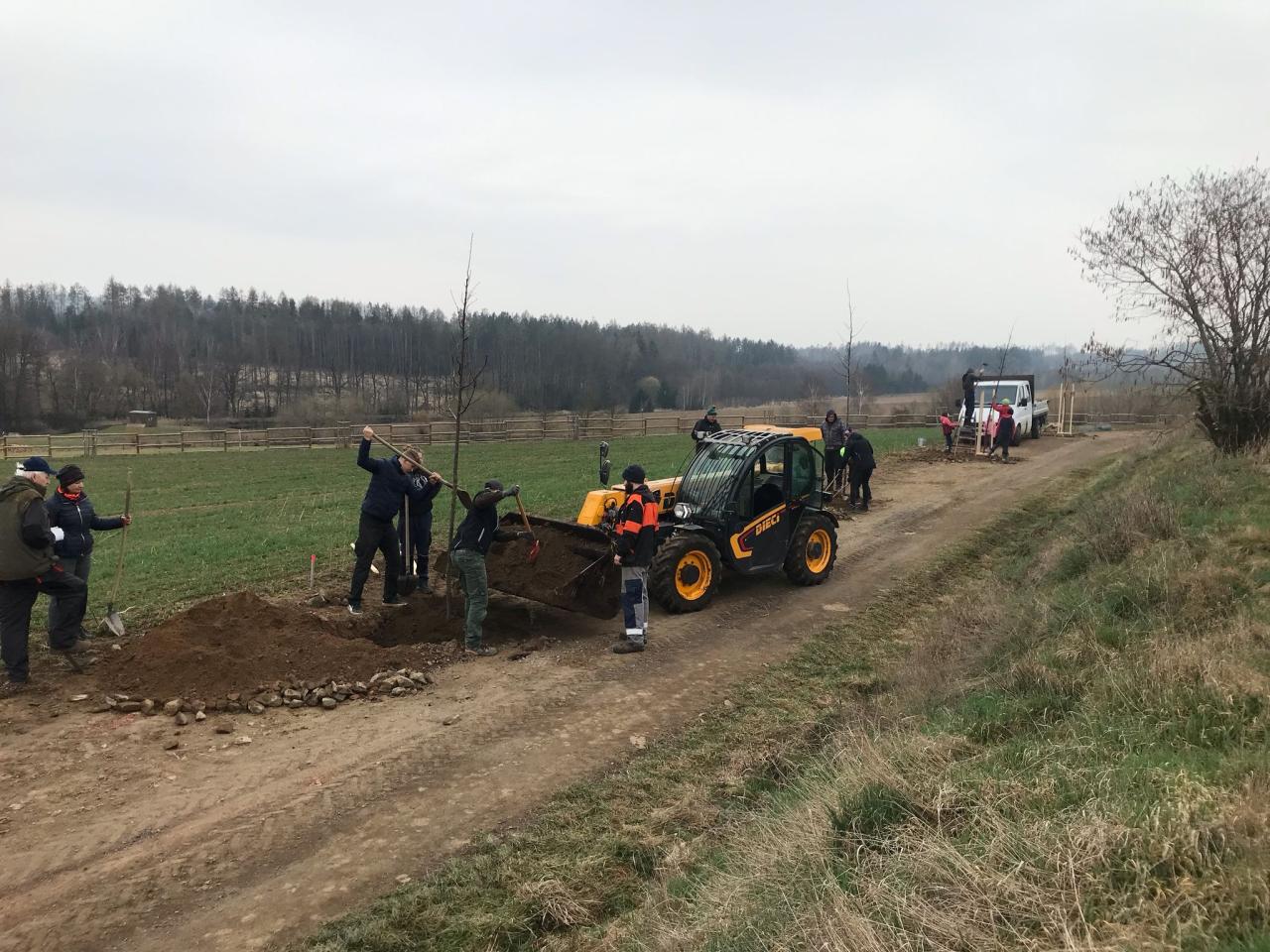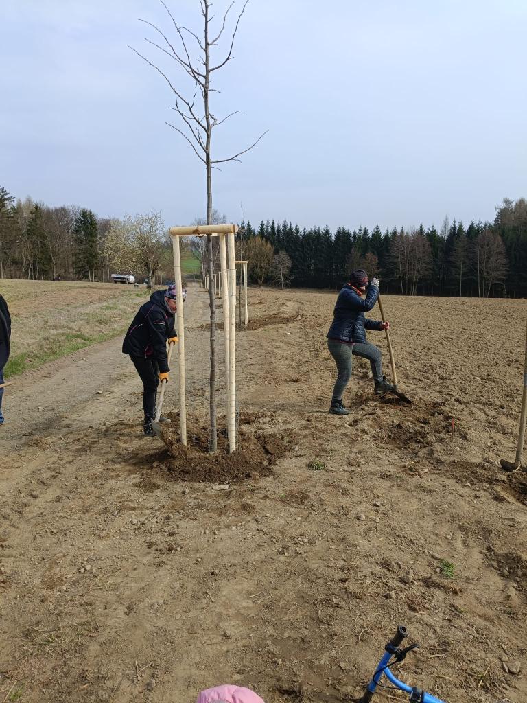 Hlavní akce, samotná výsadba, byla naplánována na sobotu 29. března 2025. Sraz účastníků byl v 9:00 hodin na návsi, kde se naložily stromky, potřebné nářadí a vyrazilo se na „borovnickou cestu”. Tam se utvořily skupinky brigádníků, jedni stromy usazovaly do předem vyhloubených jam, druzí kolem nich upravovaly terén, další instalovali opěrnou konstrukci z kůlů a ochranné oplocení proti okusu zvěří. Nakonec se všechny stromky zalily dvěma kubíky vody.