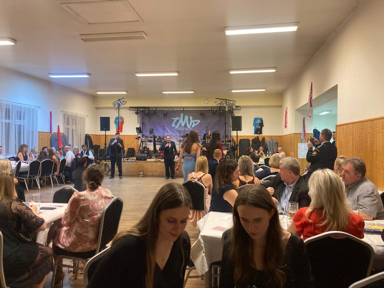 Na hasičský bál bylo vydáno 111 vstupenek, takže účast byla k potěšení organizátorů dobrá. Sál byl vyzdoben krepovými papíry v barvách soutěžního týmu SDH Chmelná (červená, světle modrá a bílá) a nechyběly ani historické i novodobé dresy a uniformy. Pro zpestření byly na stolech připraveny Hasičské noviny, speciálně vydané pro tuto příležitost. Návštěvníci se v nich mohli dočíst o programu bálu, pobavit se u zábavné části a především získat informace o činnosti SDH Chmelná v roce 2025. Muzikanti z kapely Tomáše Maďara opět podali profesionální výkon a svým vystoupením těšili hosty, kteří je zaslouženě odměňovali potleskem. Po ukončení jejich produkce se akustické kytary ujal kulturní a stravovací referent a pokladník sboru, který bavil zbývající publikum až do pozdních nočních hodin.